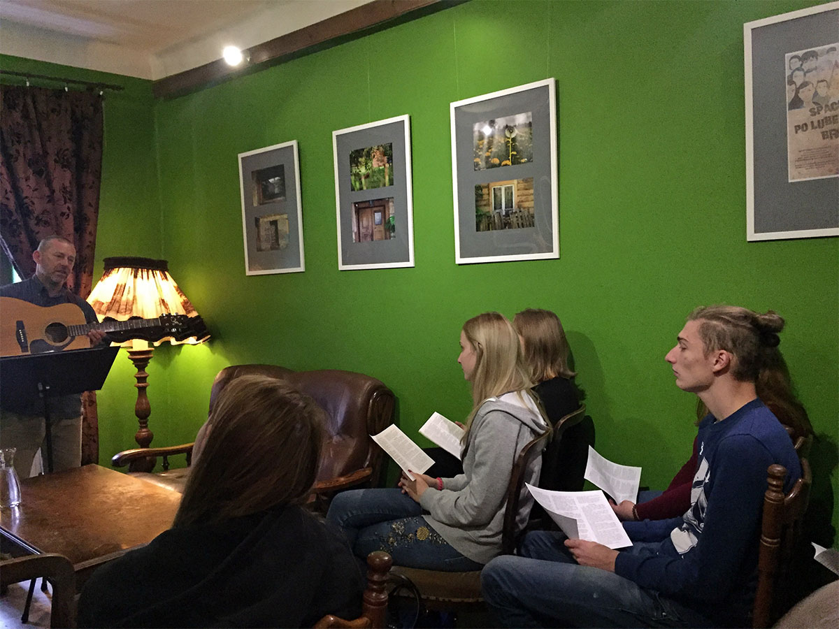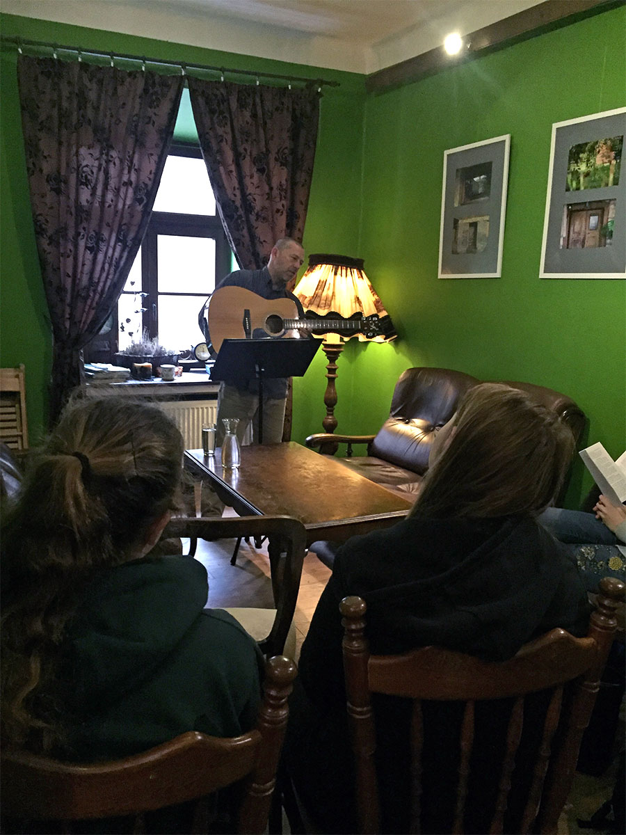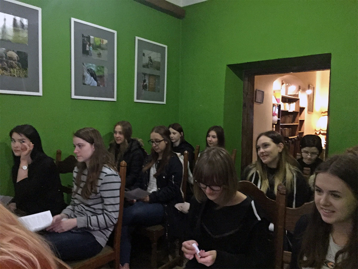 W środę 23 października młodzież z klas drugich, uczestnicząca w zajęciach rozszerzonych z języka polskiego, wzięła udział w niezwykłej lekcji literatury, którą zorganizowała dla nich lubelska kawiarnia artystyczna Między Słowami. Humaniści wysłuchali koncertu pieśni Jacka Kaczmarskiego w wykonaniu Adama Jarząbka, lidera zespołu Qasimodo, treściowo związanych z literaturą, poezją, malarstwem.