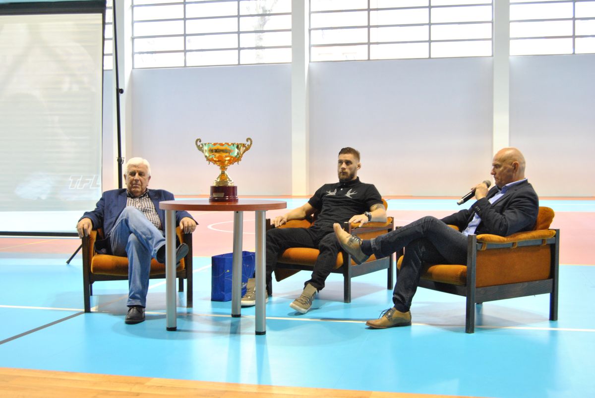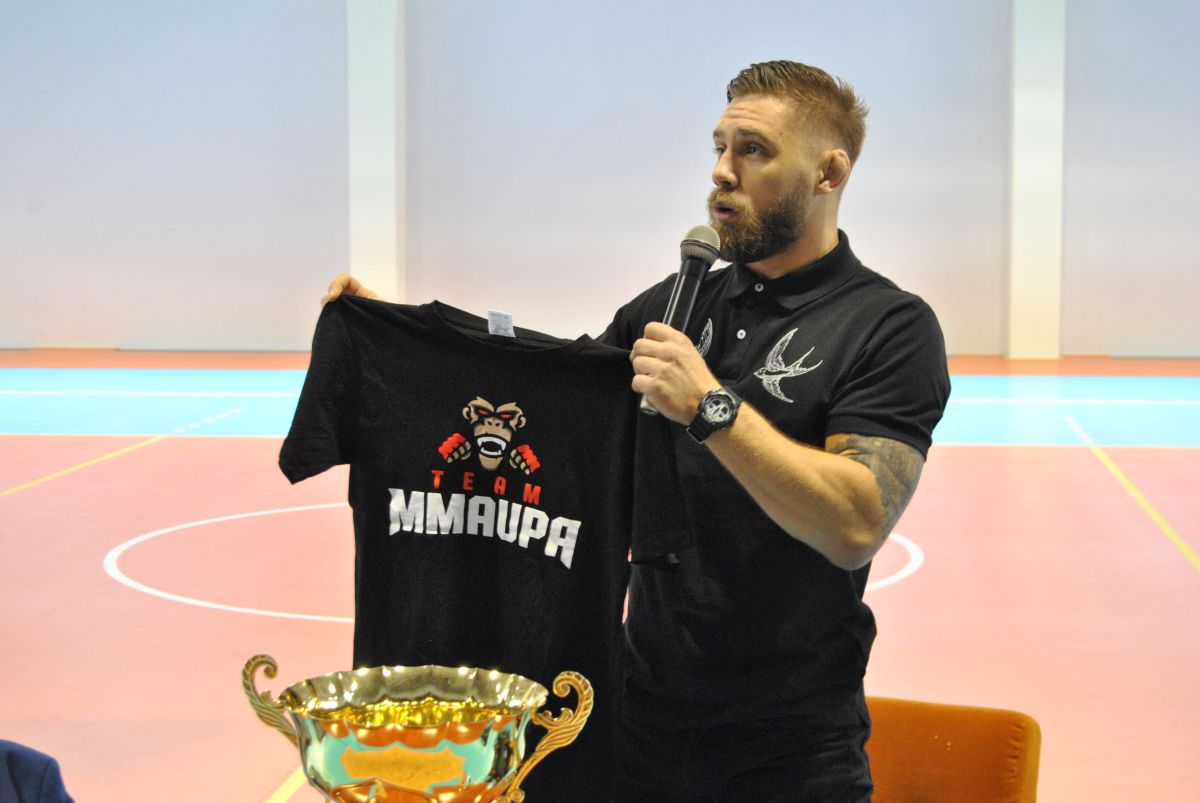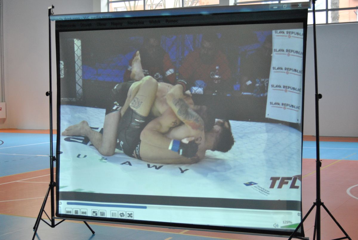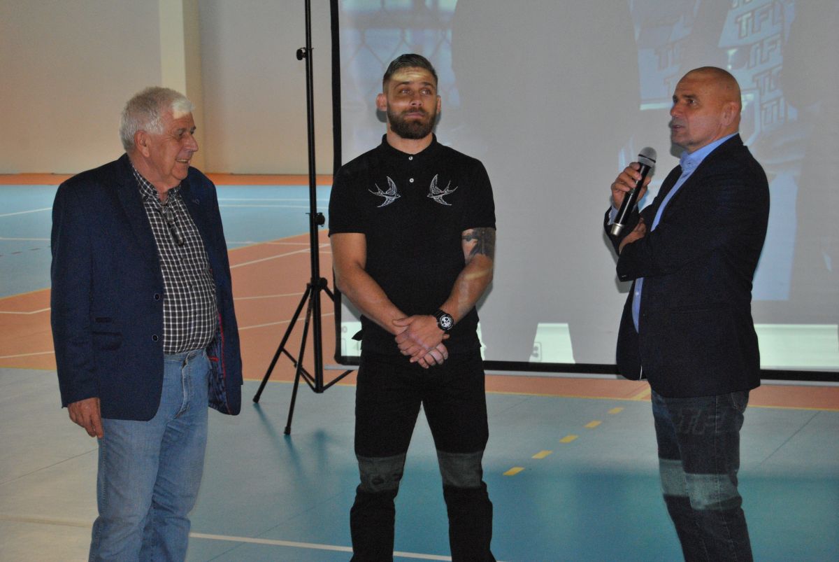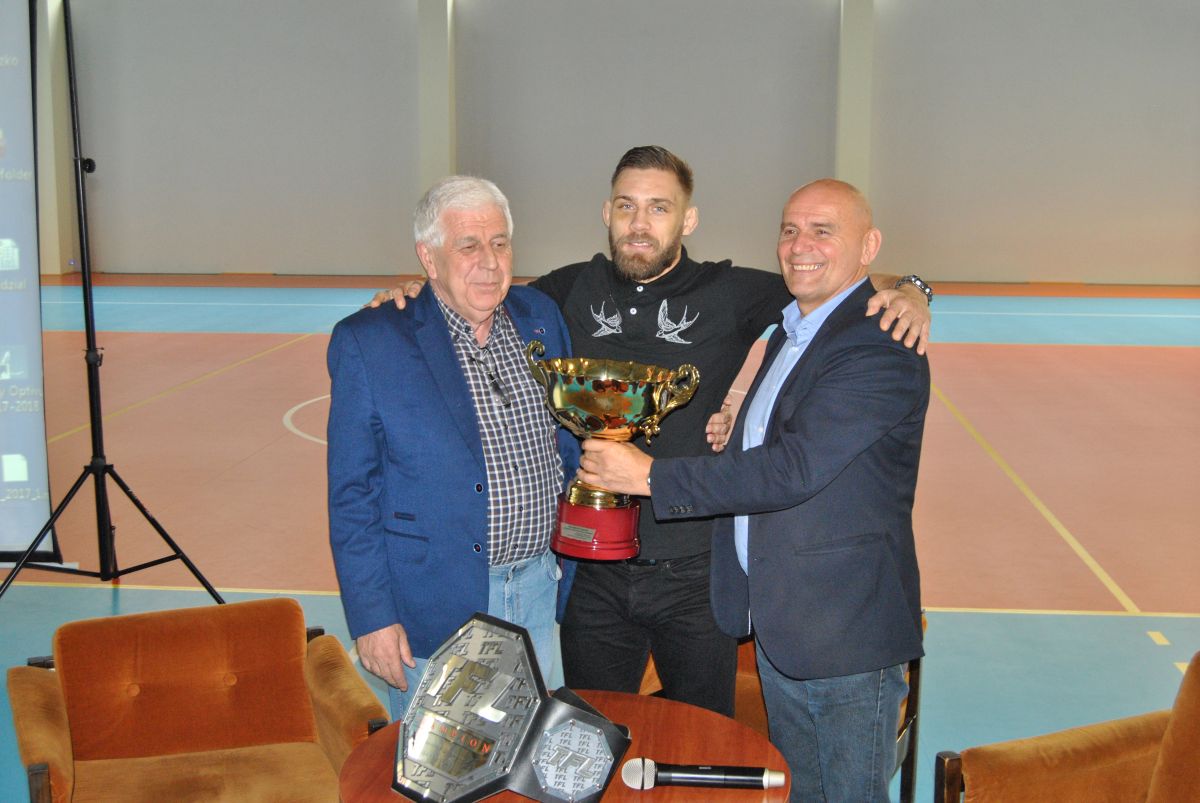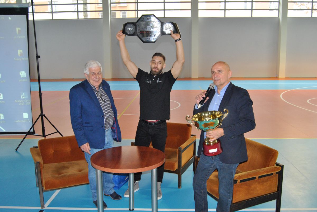 Uczniowie mogli dotknąć pasa TFL. Dyrektor S. Stefańczyk oraz starosta W. Białowąs w imieniu społeczności „Bronka” uhonorowali Huberta pucharem uznania. Uczniowie mogli także porozmawiać osobiście z gościem i zrobić sobie pamiątkowe zdjęcie.