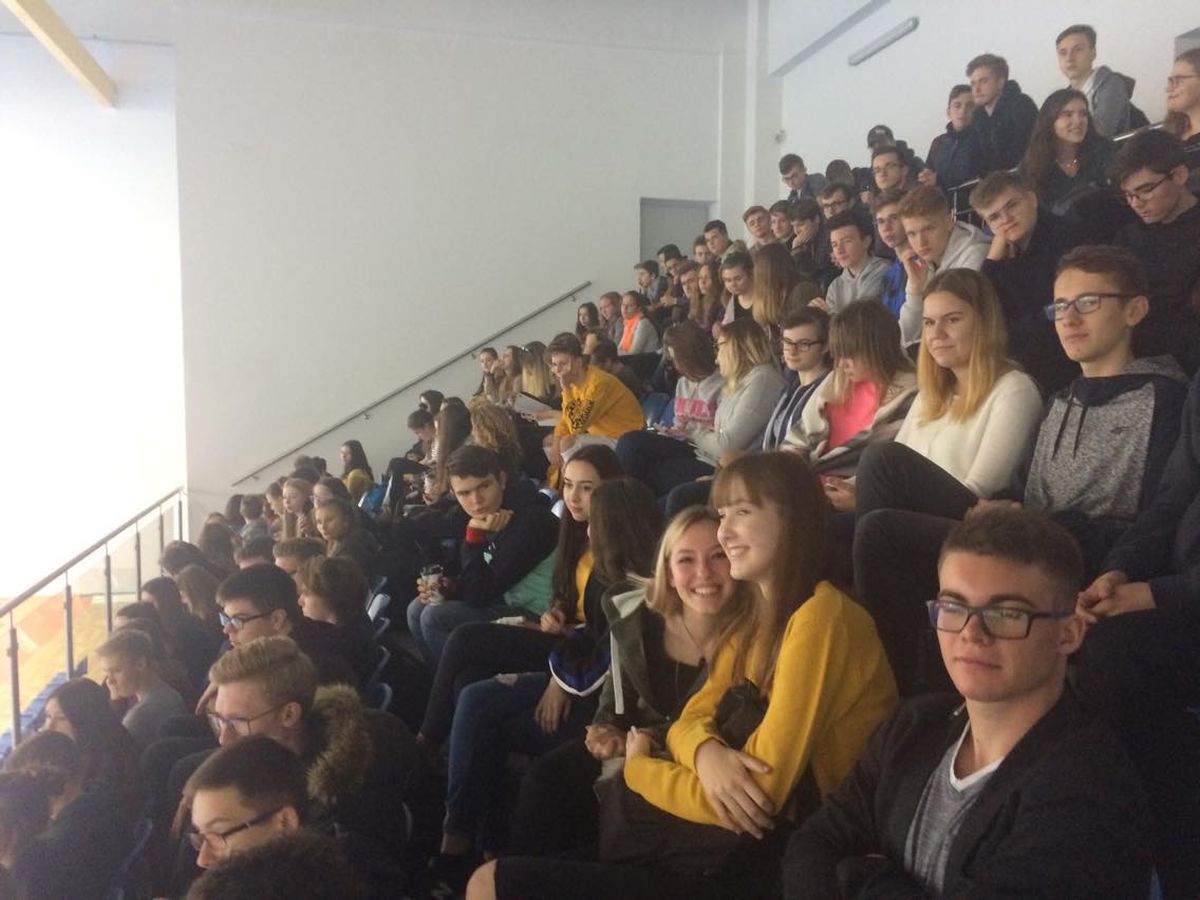 Z inicjatywy wicestarosty p. W. Białowąsa uczniów I Liceum odwiedził w miniony czwartek absolwent „Bronka”, zawodnik MMA Hubert „Małpa” Szymajda. Była to wizyta szczególna, bo Hubert jest świeżo upieczonym zdobywcą pasa TFL. Sportowiec opowiedział młodzieży o swojej drodze od liceum do Akademii Wychowania Fizycznego w Białej Podlaskiej, o karierze zawodnika MMA, o ostatniej, zwycięskiej walce, namawiał także do spełniania się i realizowania marzeń.
