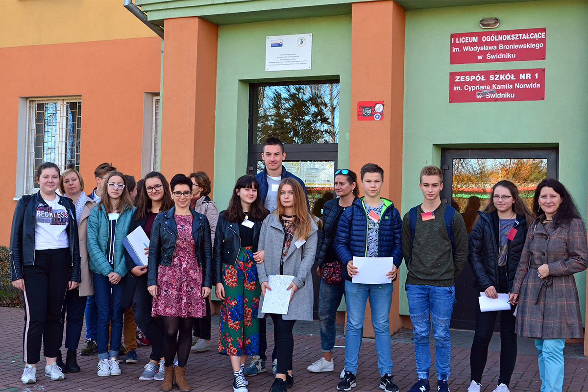 31 października młodzież z koła dziennikarskiego przeprowadziła literacką grę miejską. Tym razem do udziału w przedsięwzięciu zaprosiliśmy nie tylko gimnazjalistów ze świdnickich szkół, ale także uczniów szkół podstawowych. O nagrodę główną – nieodpłatną wycieczkę dziennikarską do Warszawy - rywalizowały cztery drużyny.