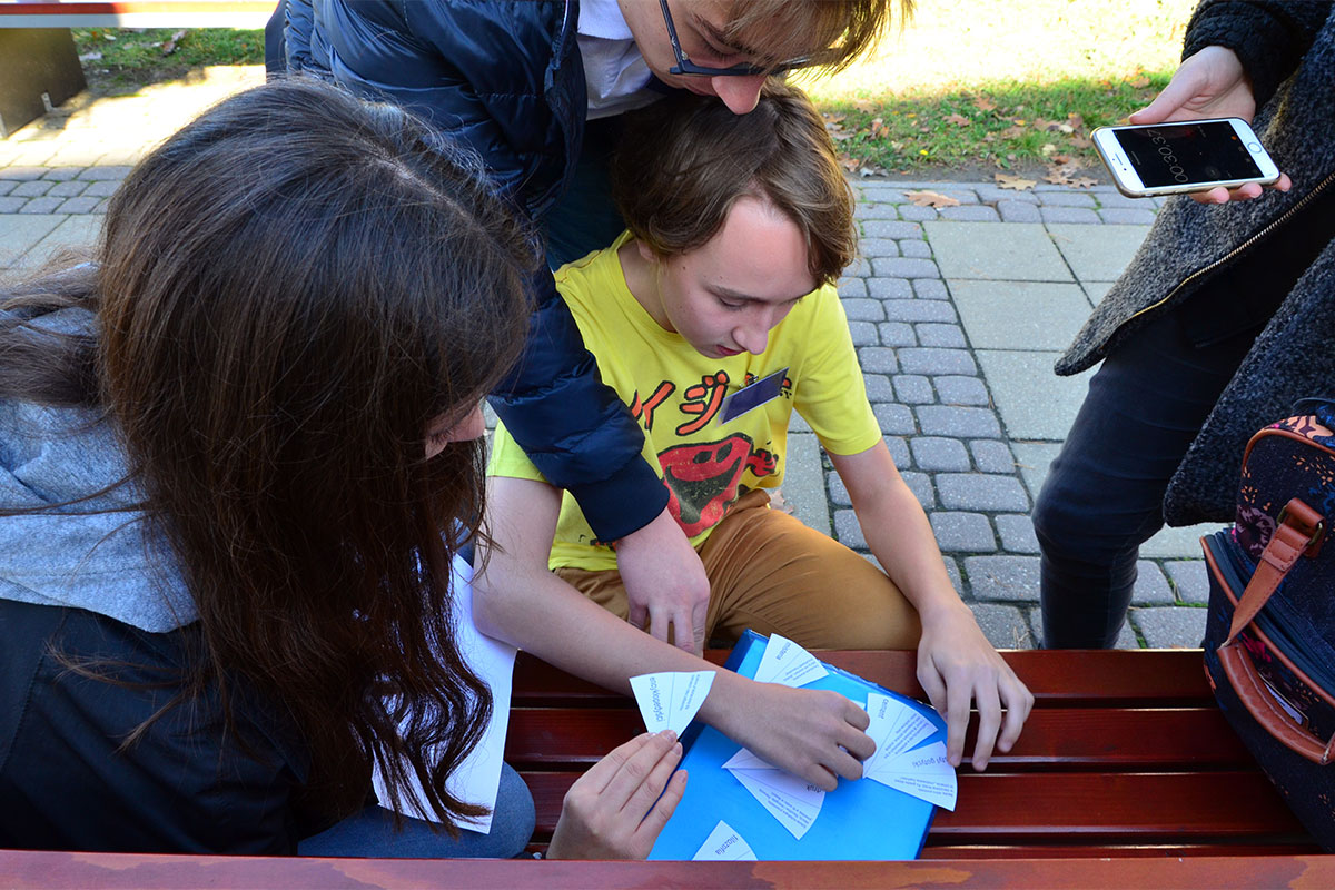Motywem przewodnim zabawy była literatura, od mitów i Biblii do Stowarzyszenia umarłych poetów. Młodzież musiała poradzić sobie z zadaniami odtwórczymi, w których sprawdzaliśmy ich wiedzę z języka polskiego oraz zadaniami twórczymi, kreatywnymi, wymagającymi zastosowania wiedzy w praktyce. Jak wyglądały zadania? Uczniowie układali opisy konkretnych bohaterów literackich, rymowane streszczenia utworów, alternatywne wersje tekstów poetyckich, czy też odgadywali mitologiczne i biblijne zagadki.