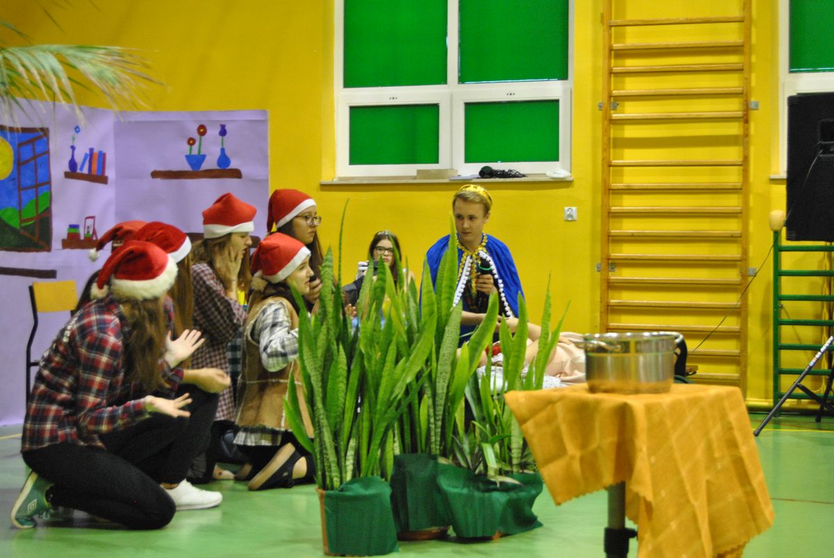 Jak co roku również na balu nie mogło zabraknąć przedstawienia – tym razem przedszkolaki obejrzały „Królewnę śnieżkę”, którą licealiści przygotowali pod kierunkiem p. Z. Mazurek w ramach wiedzy o kulturze. Tańce przy między innymi „Kaczuchach” i „Jedzie pociąg z daleka” były przeplatane konkursami, zabawami, poczęstunkiem i pokazami fizyki dla smyka. Rodzice maluchów w podziękowaniu za zabawę ofiarowali ubranka, zabawki, gry, książeczki, kosmetyki dziecięce oraz pieniążki, z których zakupimy środki higieny – znajdą się one w paczkach dla podopiecznych domu dziecka w Tuligłowach. Dziękujemy serdecznie wszystkim wolontariuszom oraz nauczycielom zaangażowanym w organizację balu – nauczycielom i pracownikom niepedagogicznym szkoły p. A. Jagieła, K. Paszko. Z. Mazurek, M. Noskowicz, A. Ziętek, P. Abramowiczowi, S. Kosmali, P. Bieńkowi, a także pani dyrektor B. Kowalczyk, pracownikom Przedszkola nr 4 oraz hojnym Rodzicom. A już wkrótce Charytatywny Turniej Mikołajkowy w piłkę siatkową – zapraszamy.