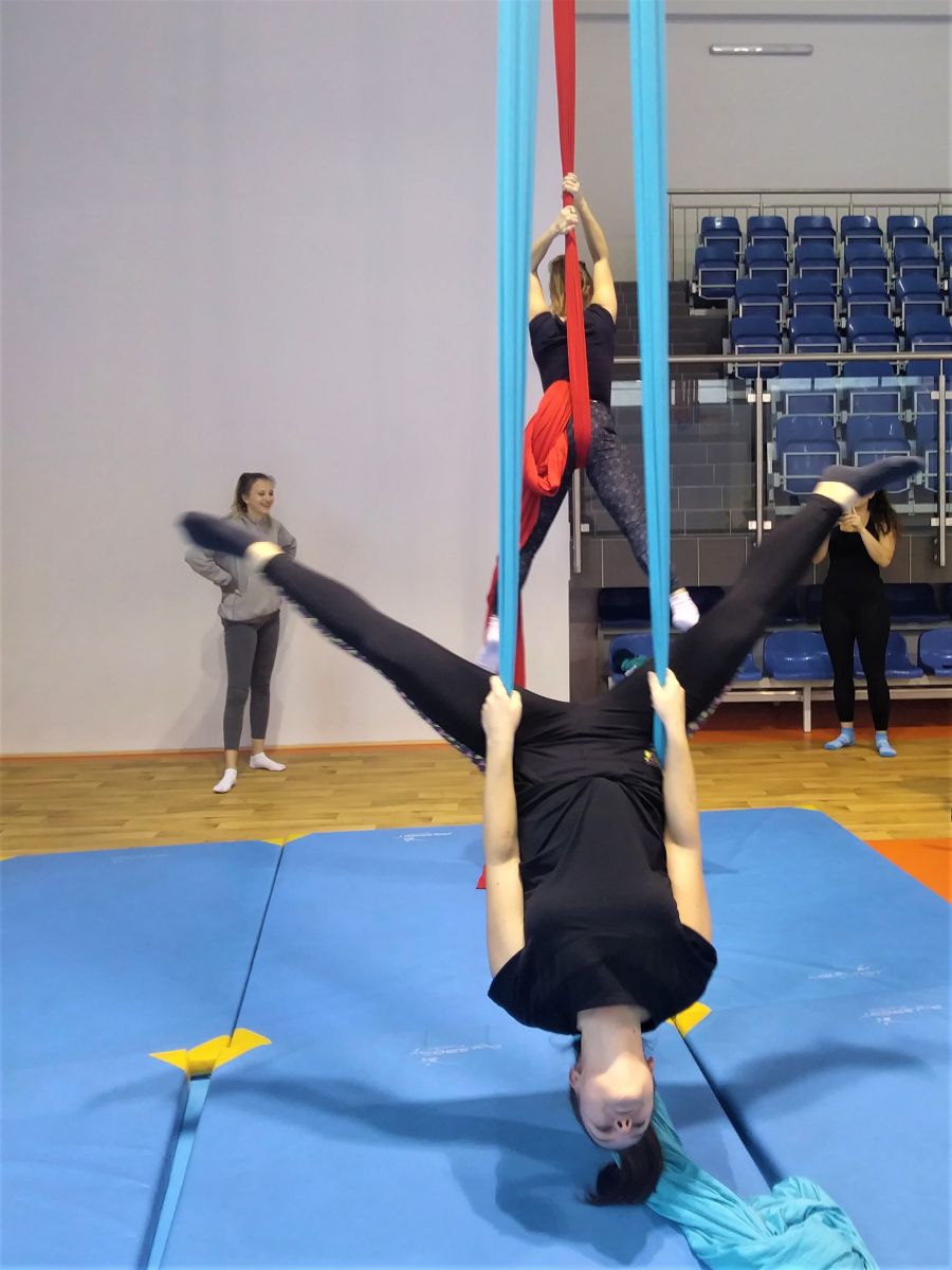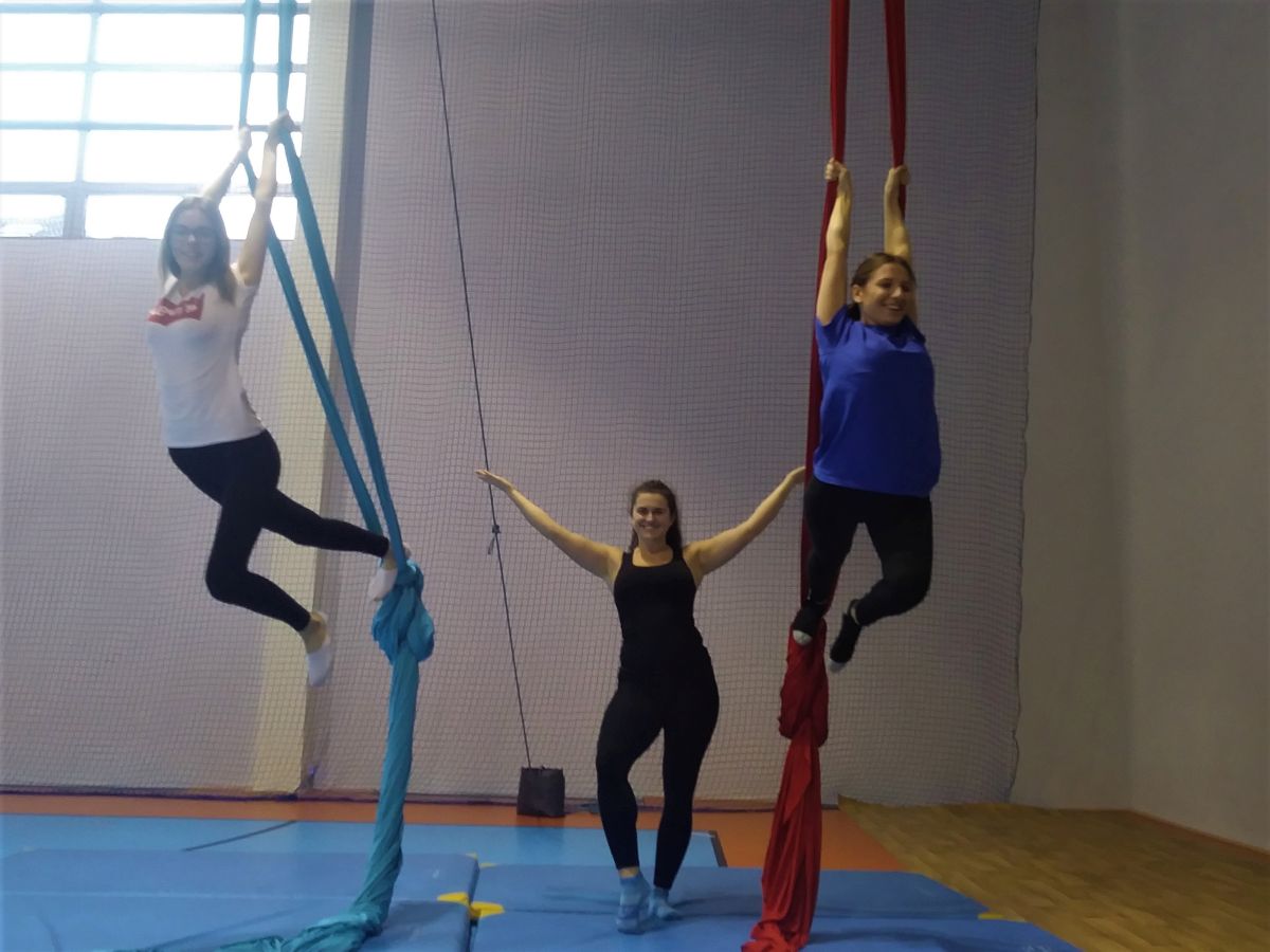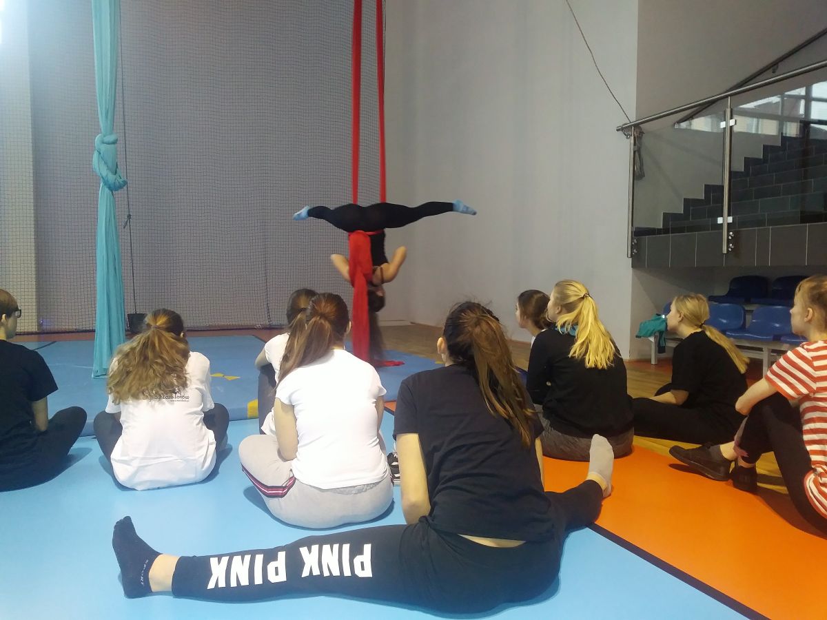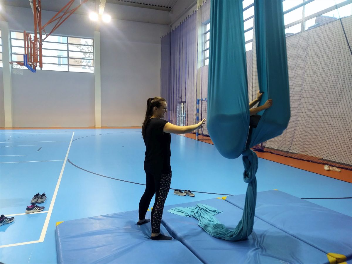3 grudnia na hali sportowej ILO odbyły się niezwykle widowiskowe warsztaty z tańca w powietrzu na chuście wertykalnej. Zajęcia dla uczennic I LO poprowadziła absolwentka naszego liceum Natalia Solarska, trener akrobatyki powietrznej.
