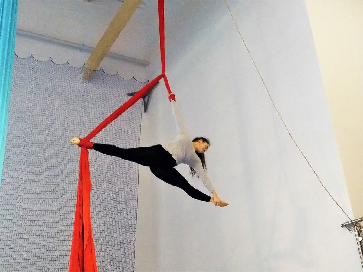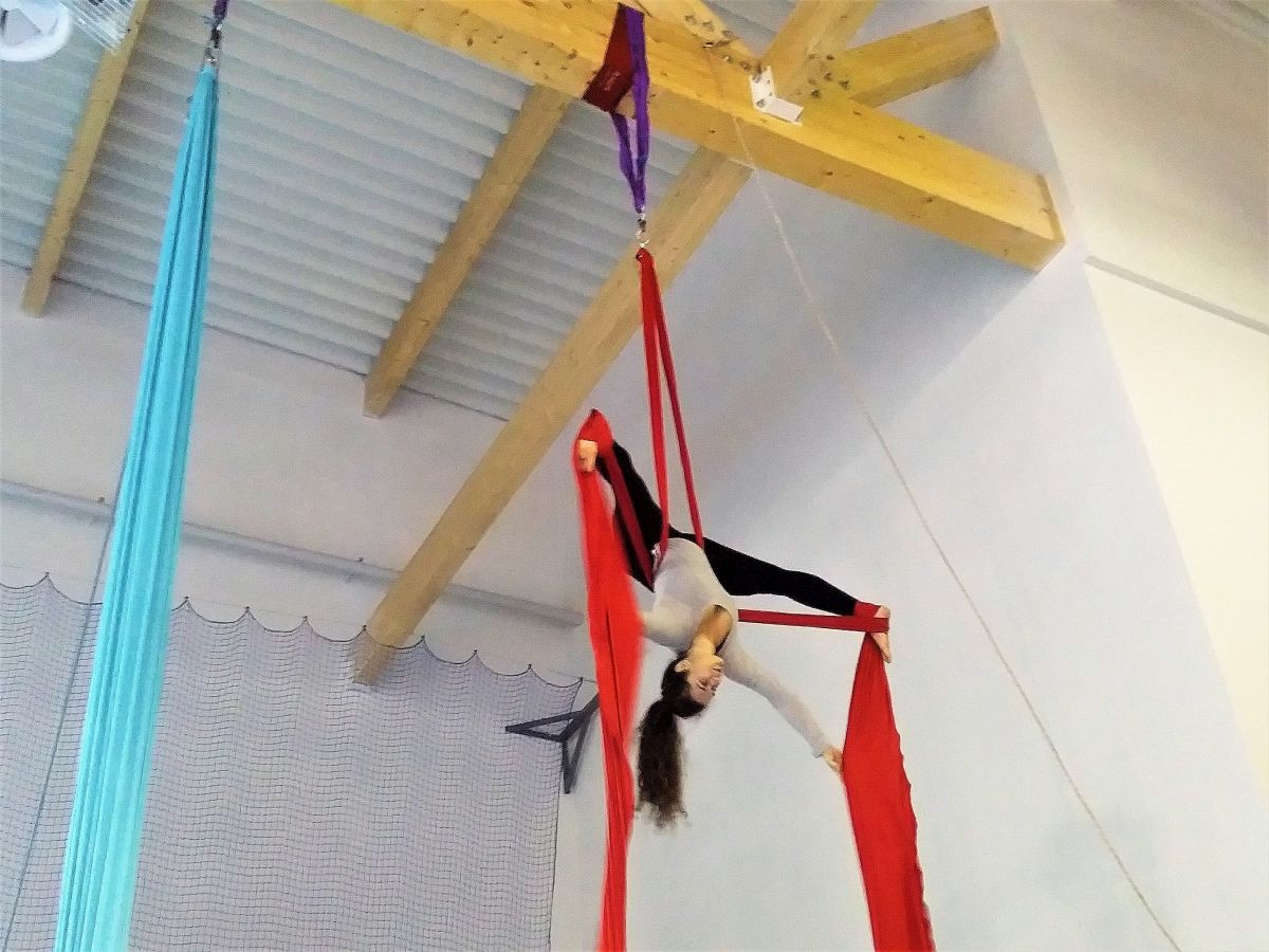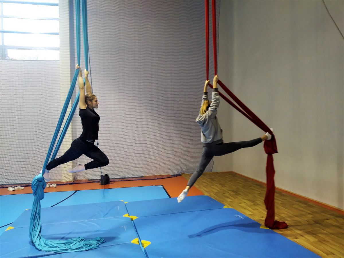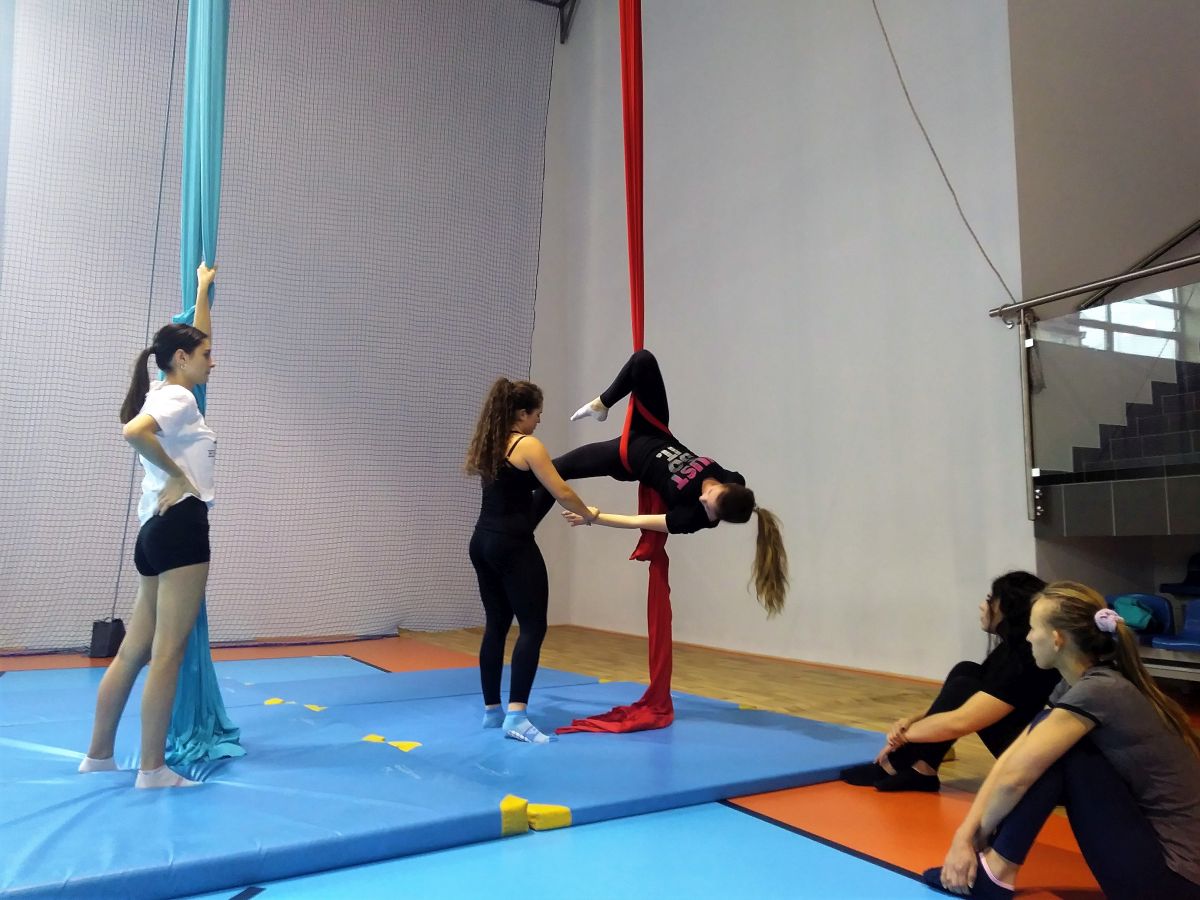 3 grudnia na hali sportowej ILO odbyły się niezwykle widowiskowe warsztaty z tańca w powietrzu na chuście wertykalnej. Zajęcia dla uczennic I LO poprowadziła absolwentka naszego liceum Natalia Solarska, trener akrobatyki powietrznej.