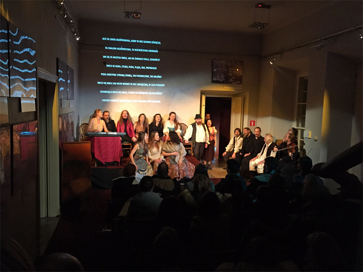 W czasie przerwy pomiędzy spektaklami widzów zaproszono do obejrzenia wystaw - czterdziestoletniej historii działania Ośrodka Praktyk Teatralnych Gardzienice, rzeźb prof. Adama Myjaka, zbiorów archeologicznych znalezionych w Gardzienicach oraz kolekcji kostiumów projektu Abdel Farrah ze spektakli teatru Thiassos prow. przez Yanę Sistovari.