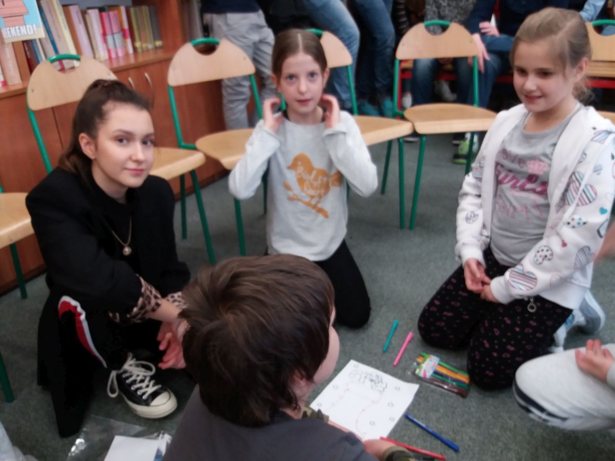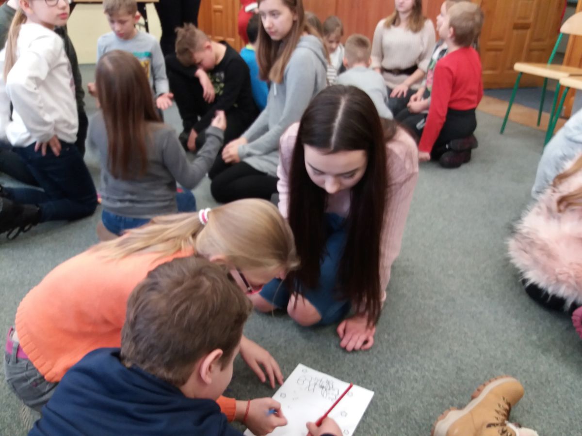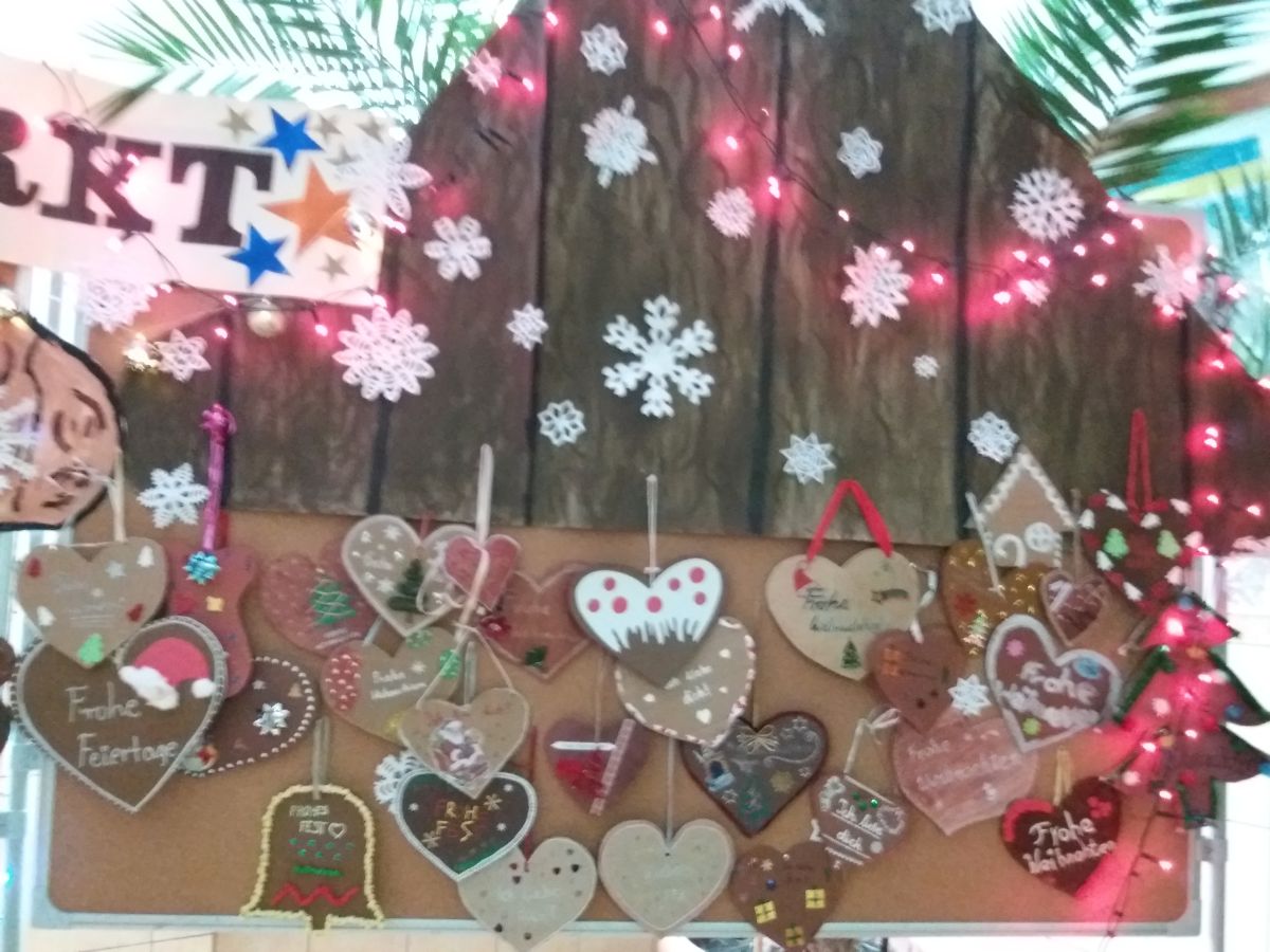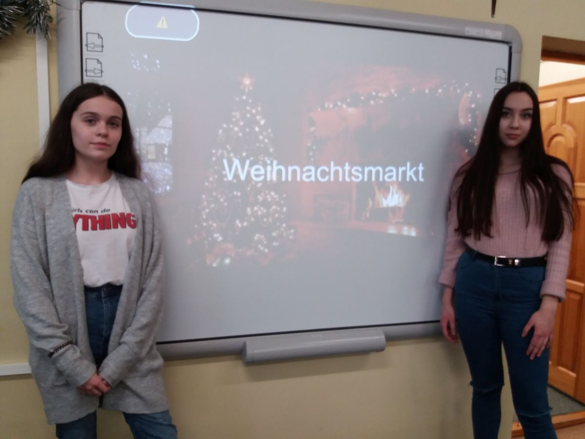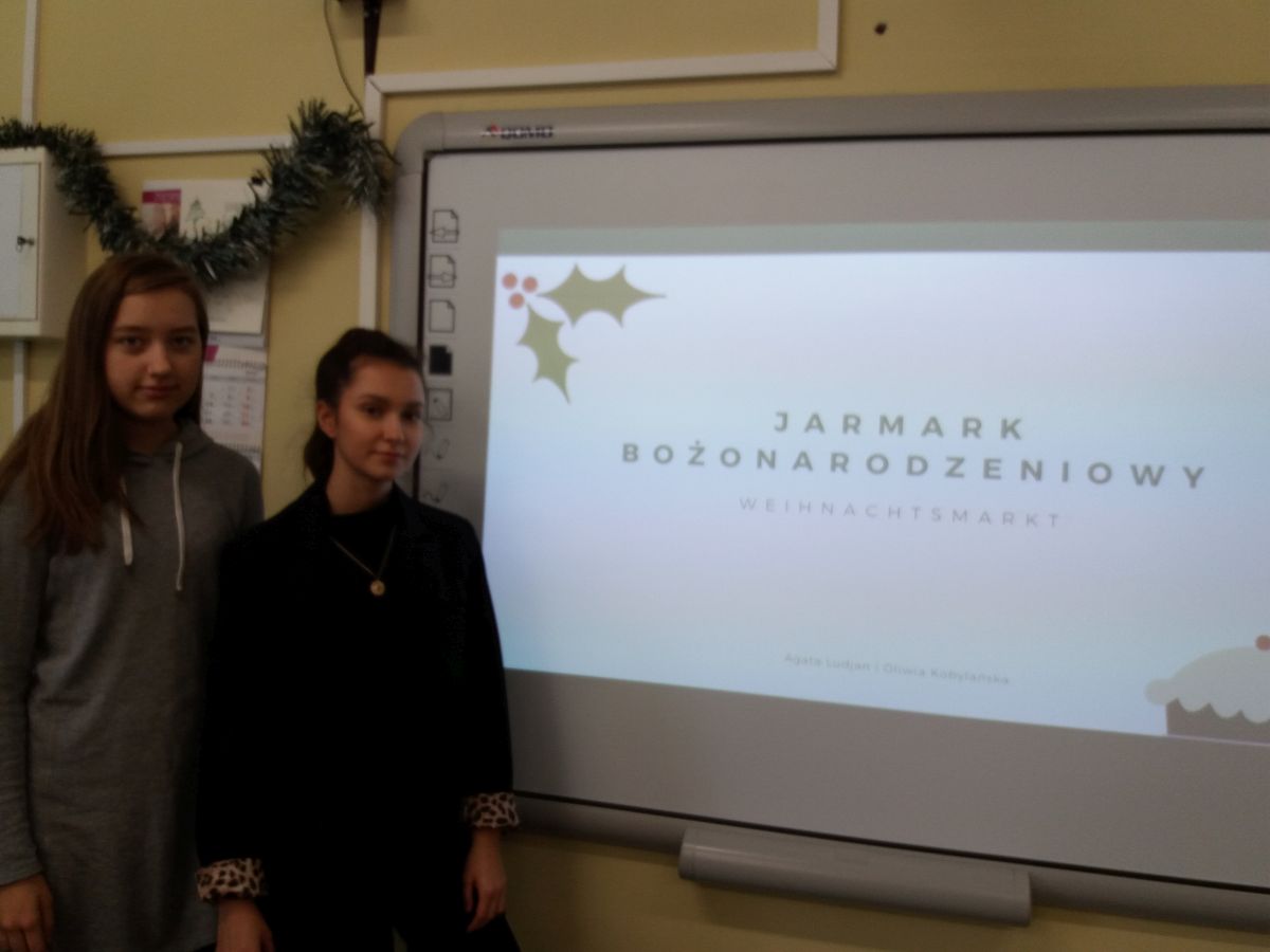 Znajdziemy tam również ozdoby świąteczne i prezenty. Do organizacji jarmarku włączyły się uczennice ILO. Licealistki przeprowadziły warsztaty dla uczniów z klas 0-5 szkoły podstawowej, podczas których opowiadały o tradycjach świątecznych pochodzących z Niemiec oraz uczyły podstawowych słów związanych z Bożym Narodzeniem. Dziewczyny upiekły również pierniczki, które sprzedawały podczas jarmarku. W ten sposób dołączyły się do akcji zbierania pieniędzy na rzecz potrzebujących wsparcia dzieci: Marysi i Krystiana oraz na bezdomne zwierzęta ze schroniska w Krzesimowie. Uczennice wspierała p. M. Stępień.