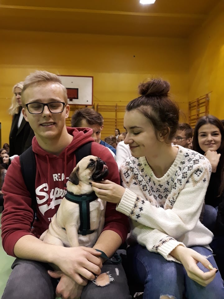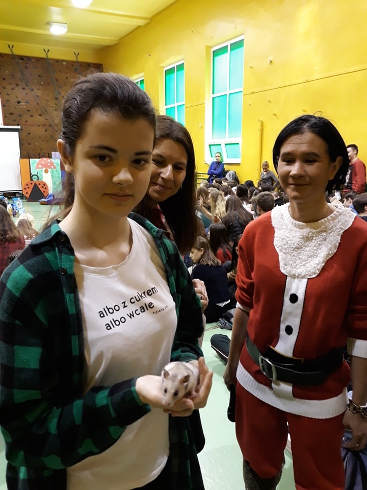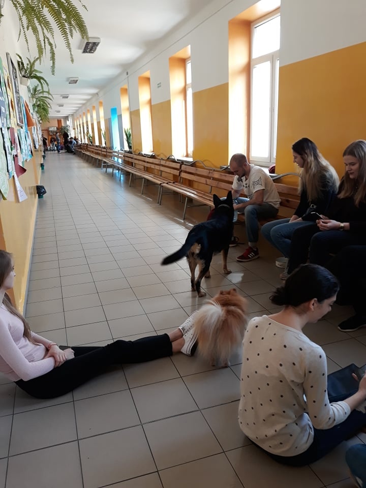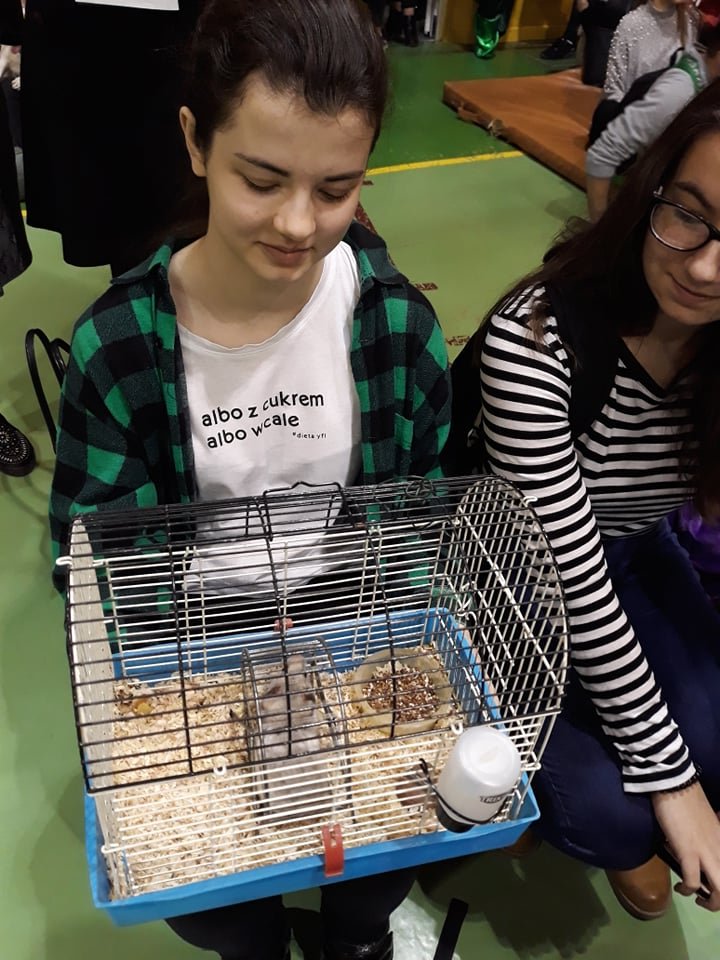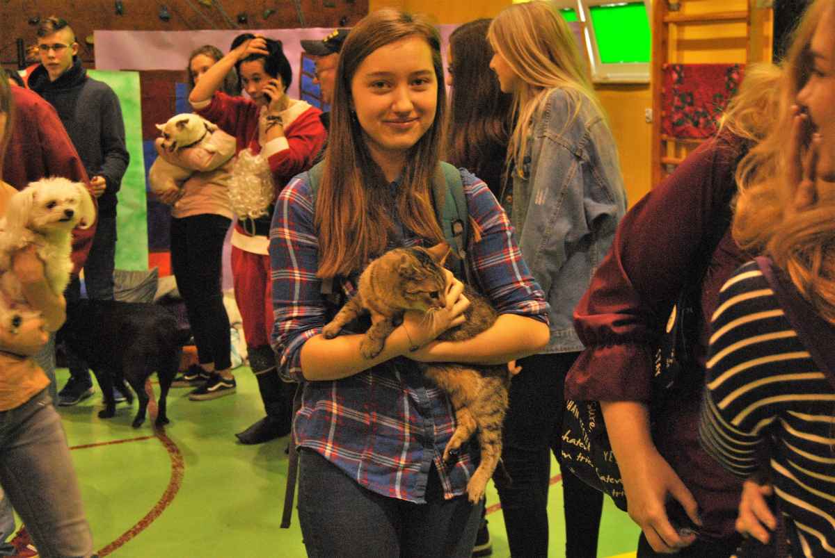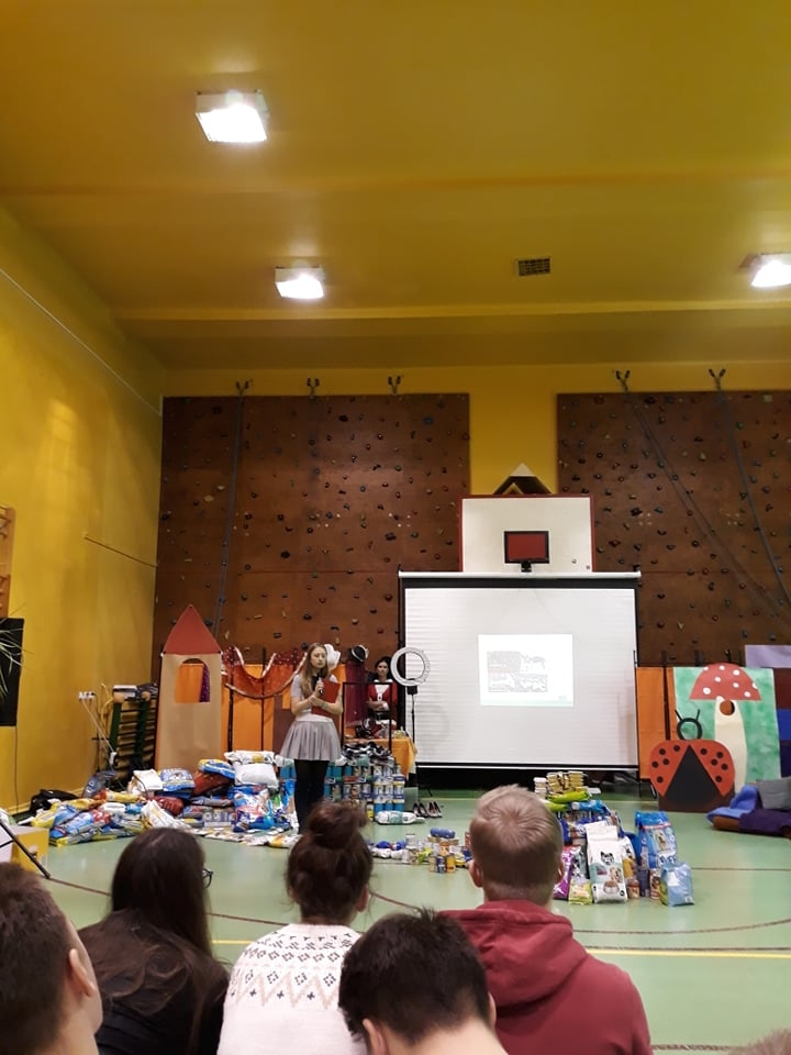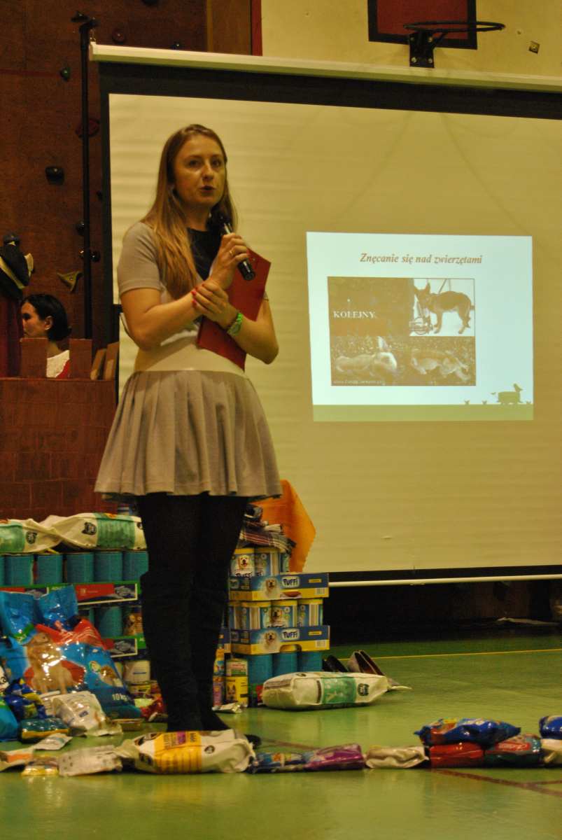 Młodzież odwiedziła p. Ilona Kozieł – Podinspektor do spraw Ochrony Środowiska w Urzędzie Miasta. Pani inspektor przedstawiła istotne, praktyczne kwestie dotyczące reagowania na bezdomne zwierzęta. Drugim gościem a zarazem odbiorcą karmy dla bezdomnych zwierzaków byli państwo – Jolanta Skowronek i Zbigniew Kryszczuk, pracownicy fundacji Animals. Imprezie towarzyszyła wystawa edukacyjna poświęcona zwierzętom, którą od wielu lat przygotowuje z młodzieżą p. A. Adamczyk.