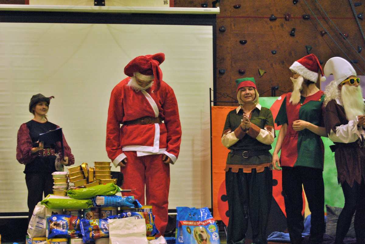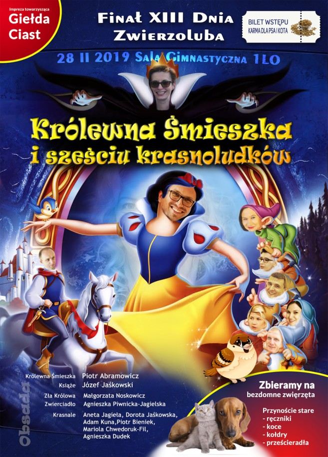 Aby obejrzeć parodię „Królewna Śmieszka i sześciu krasnoludków” uczniowie i absolwenci ILO oraz gimnazjaliści z „Jedynki” przynieśli ogromne ilości karmy. Ze sprzedaży ciast uzbierali dodatkowo rekordowe 741 zł – całą kwotę przeznaczyli na zakup karmy dla psów i kotów. Organizatorzy XIII Wojewódzkiego Charytatywnego Turnieju w Piłce Halowej dołożyli 90 kg karmy dla psów. W sumie społeczność I Liceum zebrała rekordową ilość karmy –ponad 700 kg! To liczba przybliżona, bo karma spływała do organizatorów do ostatniej chwili.