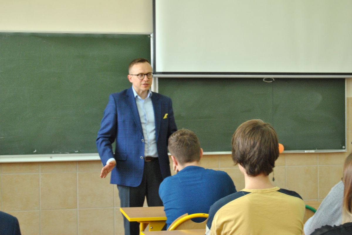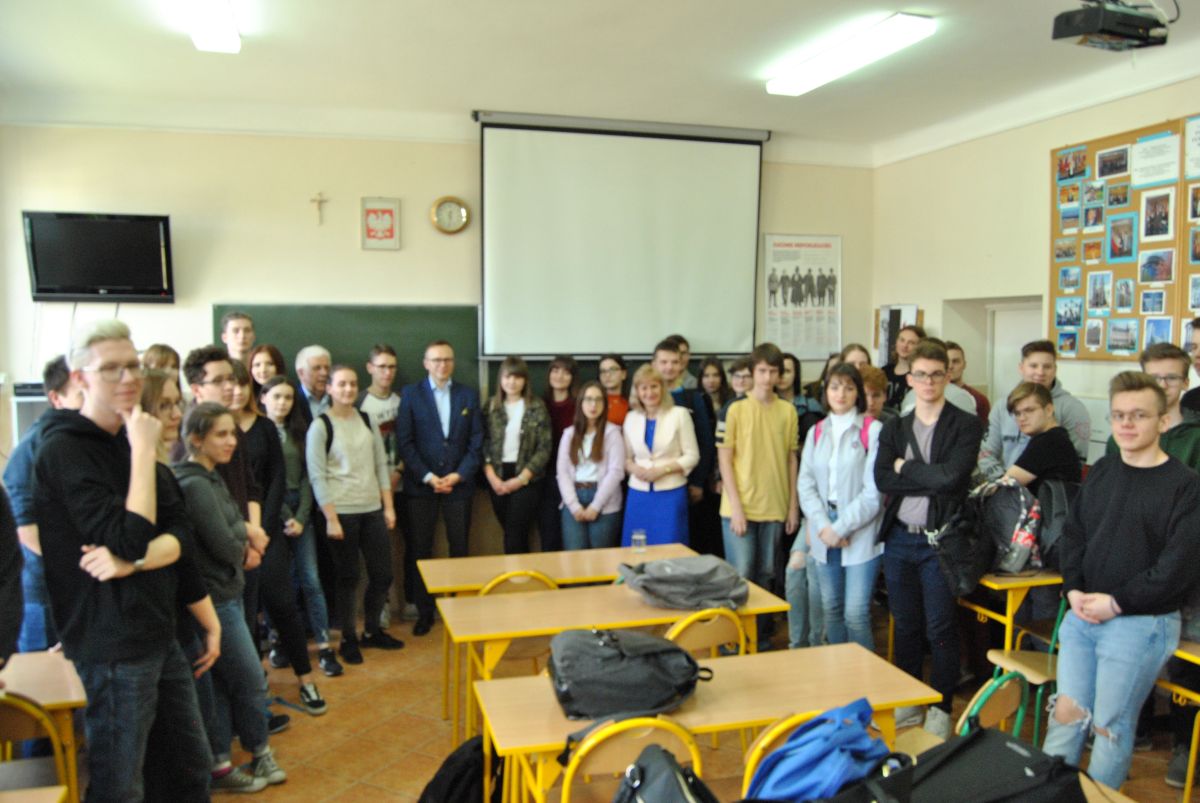 Podczas spotkania z młodzieżą pan minister Soboń przedstawił zasady funkcjonowania polskiego parlamentu, organy sejmu, charakter pracy poselskiej, rodzaje i sposób głosowania nad projektami ustaw, zasady ordynacji wyborczej do sejmu i senatu, wpływ posłów na procedurę tworzenia rządu. Zapoznał uczniów także z zasadami wyborów posłów do Parlamentu Europejskiego, rodzajem frakcji i grup parlamentarnych. Podkreślił istotną rolę parlamentu w tworzeniu prawa unijnego, zasad procedowania ustaw i nowych projektów, jego współpracę z Komisją Europejską i Radą Europejską. Wskazał na możliwość korzystania z praw obywatelskich przez wyborców, znaczenie udziału w wyborach, przedstawił korzystne skutki polityki spójności UE, wyrównywania poziomu życia w różnych regionach, rolę funduszy europejskich i projektów unijnych. Spotkanie z p. Arturem Soboniem było bardzo ciekawą, obywatelską lekcją wiedzy o społeczeństwie.
