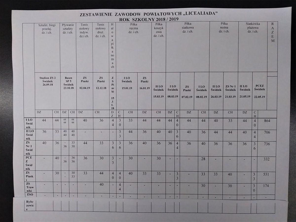 10 turniejów, 6 obiektów sportowych, 7 szkół współzawodniczących i tylko jedno pierwsze miejsce. Znamy ostateczną klasyfikację powiatowej Licealiady i mamy przyjemność poinformować Was, że zawodnicy ILO wywalczyli złoto. Nasi sportowcy dostarczyli nam wielu niezapomnianych emocji. Zdobyli dla nas złote medale w sztafetowych biegach przełajowych, pływaniu, tenisie stołowym, piłce ręcznej, koszykowej, siatkowej i siatkówce plażowej.
