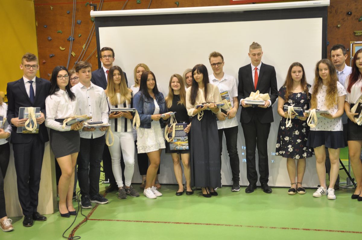 Dyrekcja Szkoły pogratulowała uczniom, którzy odebrali świadectwa z wyróżnieniem. Listy gratulacyjne otrzymali również ich Rodzice. Średnią ocen co najmniej 4,00 uzyskało 107 uczniów Oto 24 najlepszych: Grzegorz Toporowski (5,60) – stypendysta stypendium Prezesa Rady Ministrów, Ola Skainowska (5,53) – stypendystka stypendium Starosty Powiatu Świdnickiego, Wiktoria Perlińska (5,44), Zuzia Ślęp (5,43), Michał Flis (5,38), Maja Ziółkowska (5,29), Tola Sadło (5,25), Kasia Adamska (5,25), Magda Rogowska (5,22), Kuba Wilk(5,22), Michał Mirosław (5,13), Natalka Leniak (5,13), Kacper Śliwa (5,06), Weronika Melian (5,00), Filip Staniak (5,00), Ola Pawłowska (4,93), Miłosz Lipiński (4,88), Natalka Gałka (4,88), Iza Typińska (4,88), Natalka Szutko (4,86), Gabrysia Nowak (4,86), Kinga Waryszak (4,80), Monika Nadgrodkiewicz (4,76) i Kasia Garbacik (4,75). Dyplomy uznania otrzymali również najlepsi sportowcy, społecznicy i laureaci konkursów i olimpiad. Po ceremonii uhonorowania najlepszych uczniowie klasy 1A zaprezentowali niezwykle sympatyczne „Śpiewające zakończenie”. Gratulujemy wszystkim a na wakacje życzymy samych niezapomnianych wrażeń i dobrego odpoczynku. Do zobaczenia we wrześniu.