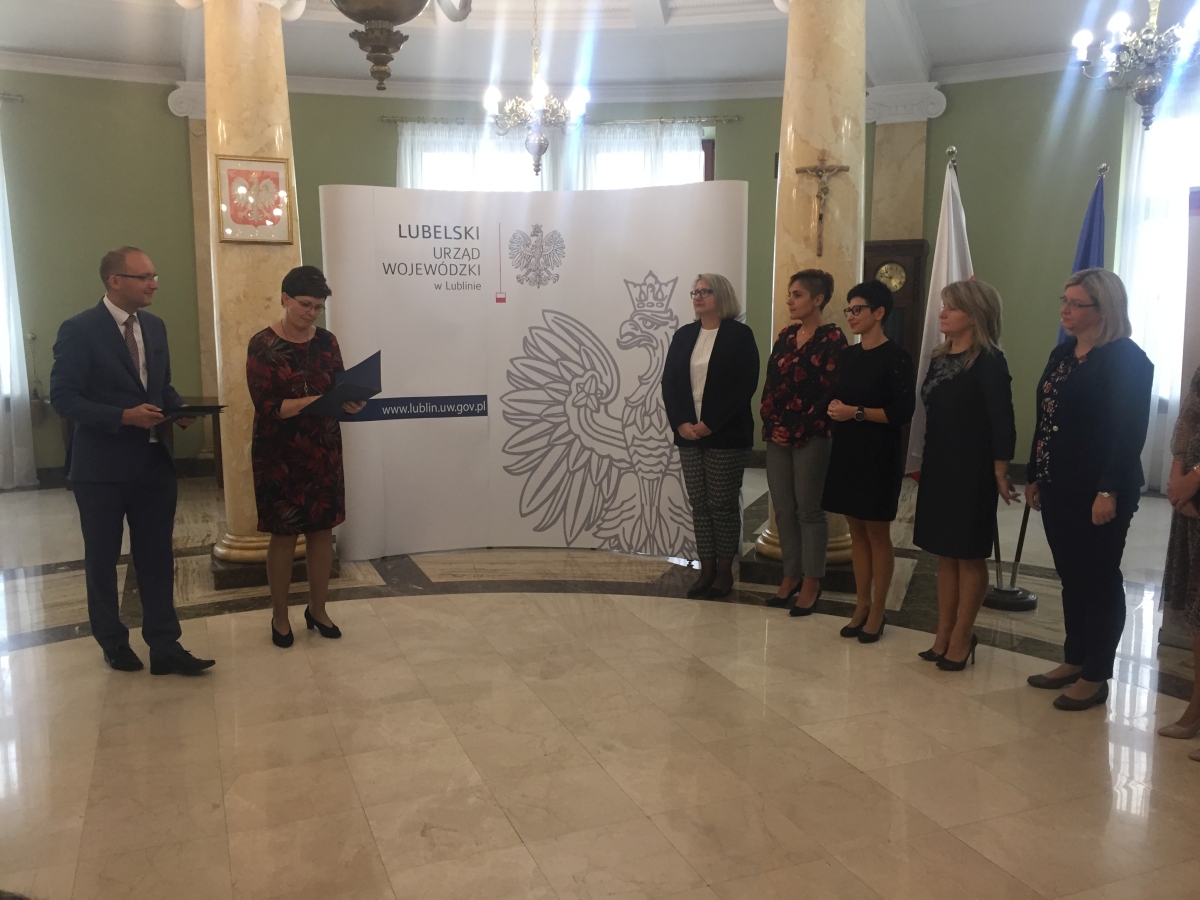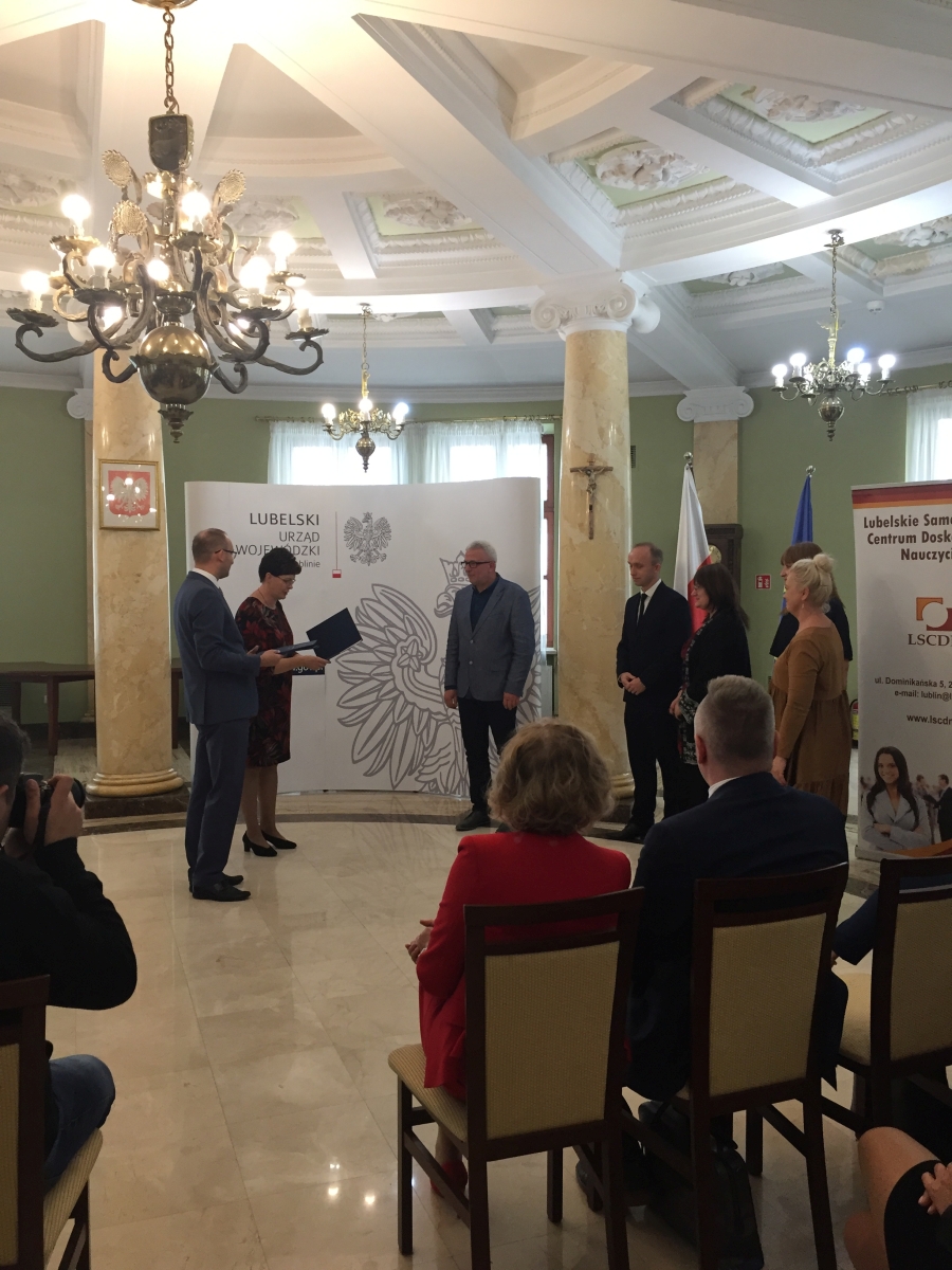 25 września 2019 r. w Sali Kolumnowej Lubelskiego Urzędu Wojewódzkiego odbyło się uroczyste wręczenie aktów powierzenia zadania doradcy metodycznego. W województwie lubelskim spośród trzech tysięcy aplikujących nauczycieli wszystkich przedmiotów wybrano 86, którym powierzono obowiązki doradców metodycznych. Miło nam poinformować, że w tej grupie znaleźli się nauczyciele z I LO - Dorota Jaśkowska - doradca metodyczny z języka polskiego oraz Józef Jaśkowski - doradca metodyczny z matematyki.
