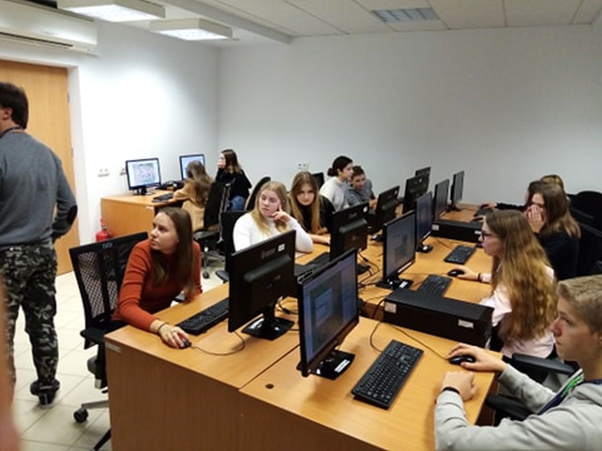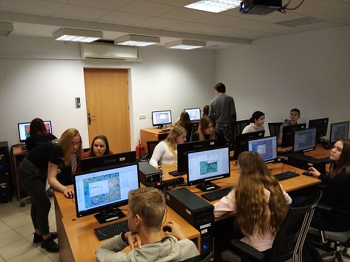 Sesja warsztatowa składała się z analizy zdjęć satelitarnych w oprogramowaniu GIS i geimoformacyjnego Escape Roomu, gdzie uczniowie zarówno klas 1 i 2 poradzili sobie znakomicie. Opiekę nad uczniami sprawował nauczyciel geografii Adam Kuna.