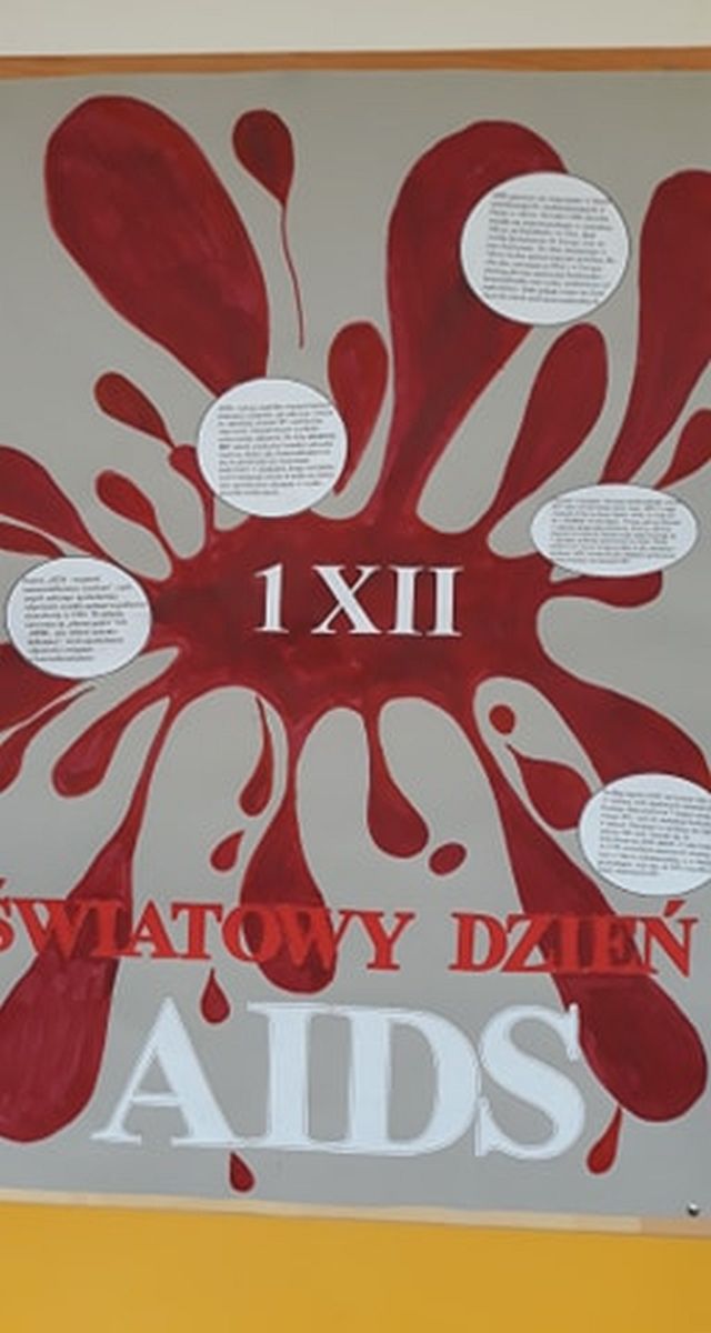 1 grudnia– w tym dniu od 1988 r. obchodzimy Światowy Dzień AIDS ustanowiony przez Światową Organizację Zdrowia (WHO). Ta data ma na celu nie tylko przypominać o profilaktyce HIV/AIDS, ale też uwrażliwiać na problem epidemii tej choroby (obecnie na świecie żyje 41 mln ludzi z HIV/AIDS) oraz na sytuację dotkniętych nią ludzi. 29 listopada uczniowie klasy 2B i 2D uczestniczyli w warsztatach profilaktycznych dotyczących problematyki HIV i AIDS.