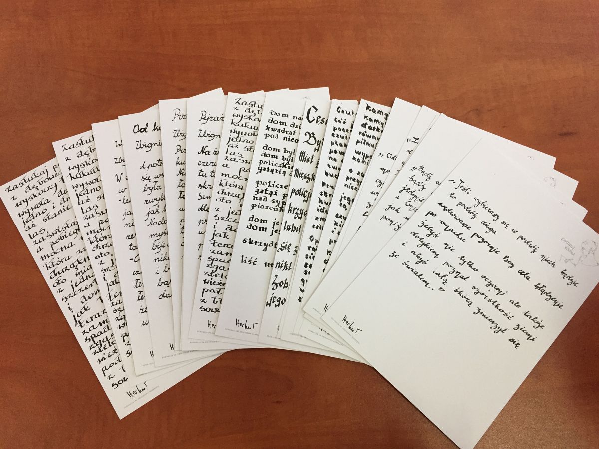 Żeby sprostać trudnemu zadaniu humaniści z ILO odbyli warsztaty z kaligrafii pod okiem malarza, rzeźbiarza i grafika Marcina Ziółkowskiego. Wiersze już są. Teraz trafią do osób, dla których słowo poetyckie ma wciąż duże znaczenie.