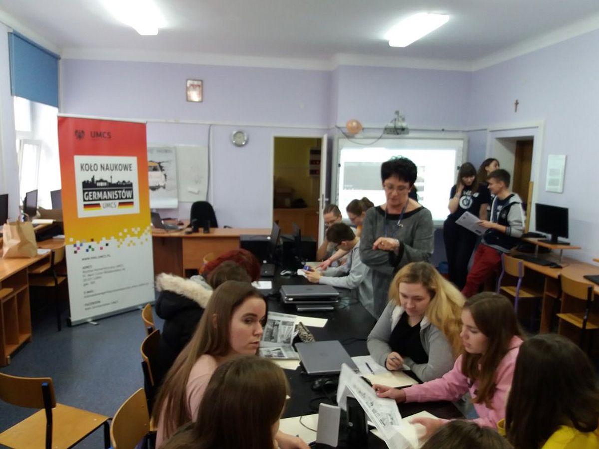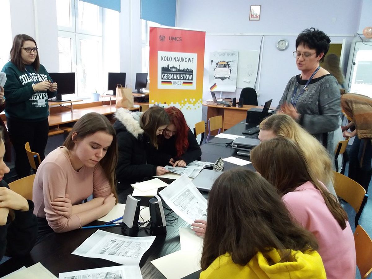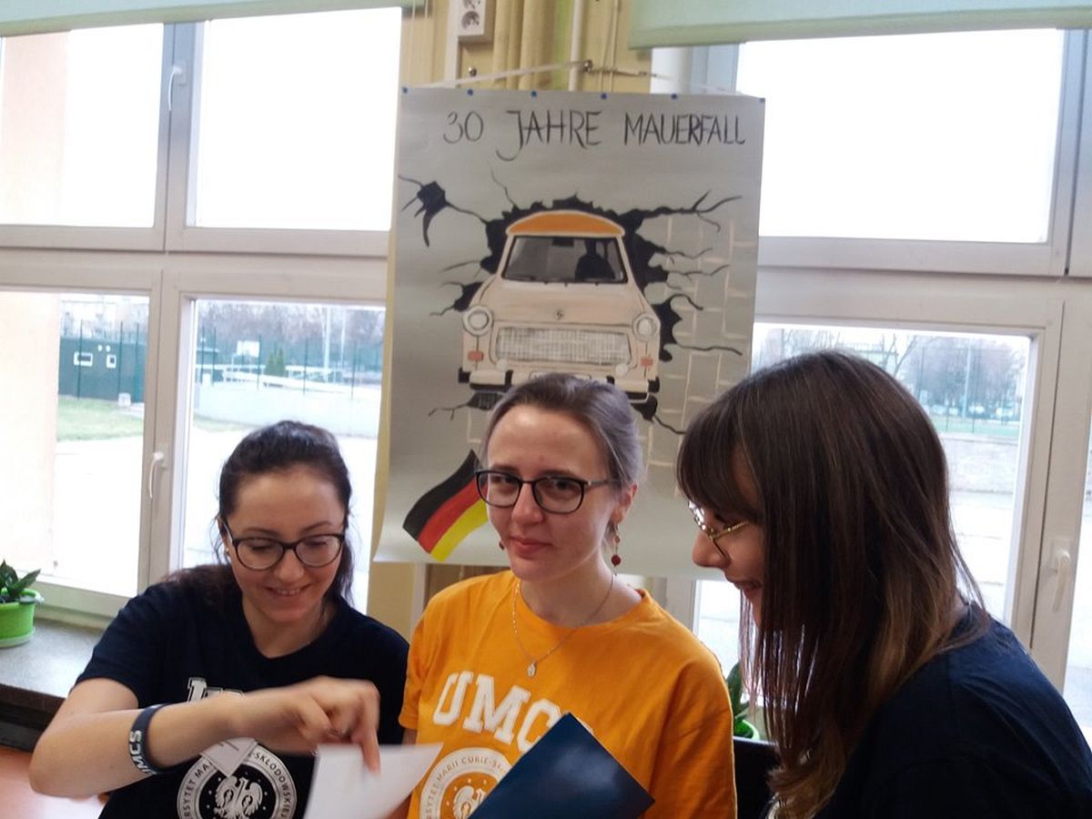9 grudnia odbyły się warsztaty na temat historii Muru Berlińskiego. Przeprowadzili je dla naszych uczniów studenci z Koła Naukowego Germanistów UMCS. Przyjechali do nas razem ze swoim opiekunem dr Beatą Kasperowicz - Stążką i wspólnie przybliżyli historię podziału Berlina i jego podziału.