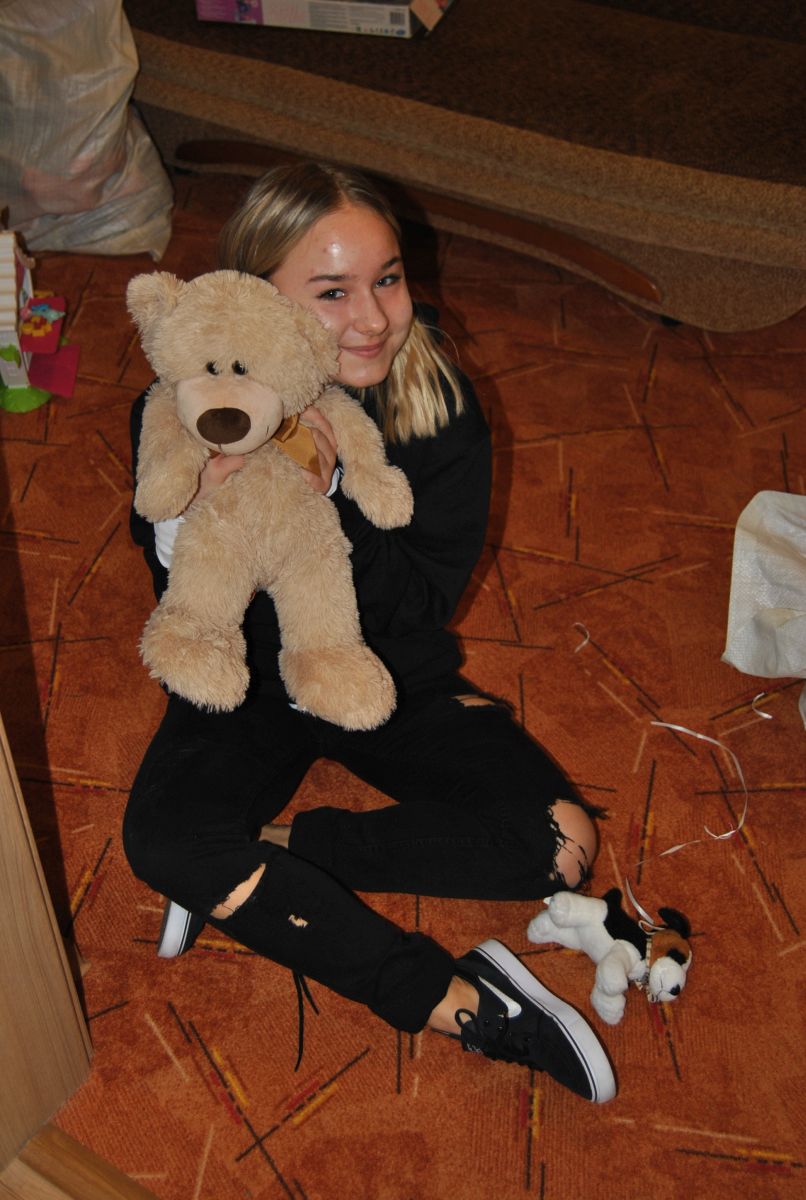 Dinozaur trafił do Oskara, a Oskar, wyobraźcie sobie, fascynuje się dinozaurami, Karol zjadł od razu całą czekoladę i dwa batony, przymierzył też wszystkie koszulki i wszystkie idealnie pasowały, maleńka Nadia zażyczyła sobie ubranie jej natychmiast w dwie sukienki, kurteczkę i kamizelkę puchową, chwilowo zrezygnowała z przymierzenia na kamizelkę stroju kąpielowego, najlepiej w krzesła gra się z panem Bieńkiem, a na grach w telefonie najfajniej siedzieć z panem Kuną.