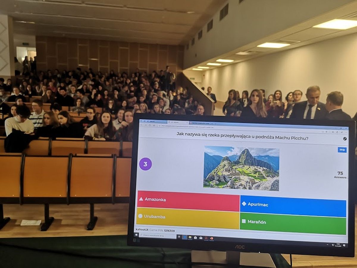 W czwartek 12 grudnia uczniowie z grupy rozszerzonej z języka hiszpańskiego gościli w Katolickim Uniwersytecie Lubelskim w ramach Dnia Peruwiańskiego. Była to wyśmienita okazja do zapoznania się z bogatą kulturą kraju położonego na zachodnim wybrzeżu Ameryki Południowej. Dzień Peruwiański składał się z wystąpienia Alberto Salas Barahona, Ambasadora Republiki Peru w Polsce i prelekcji poświęconych Peru, relacjom polsko-peruwiańskim i językowi hiszpańskiemu.