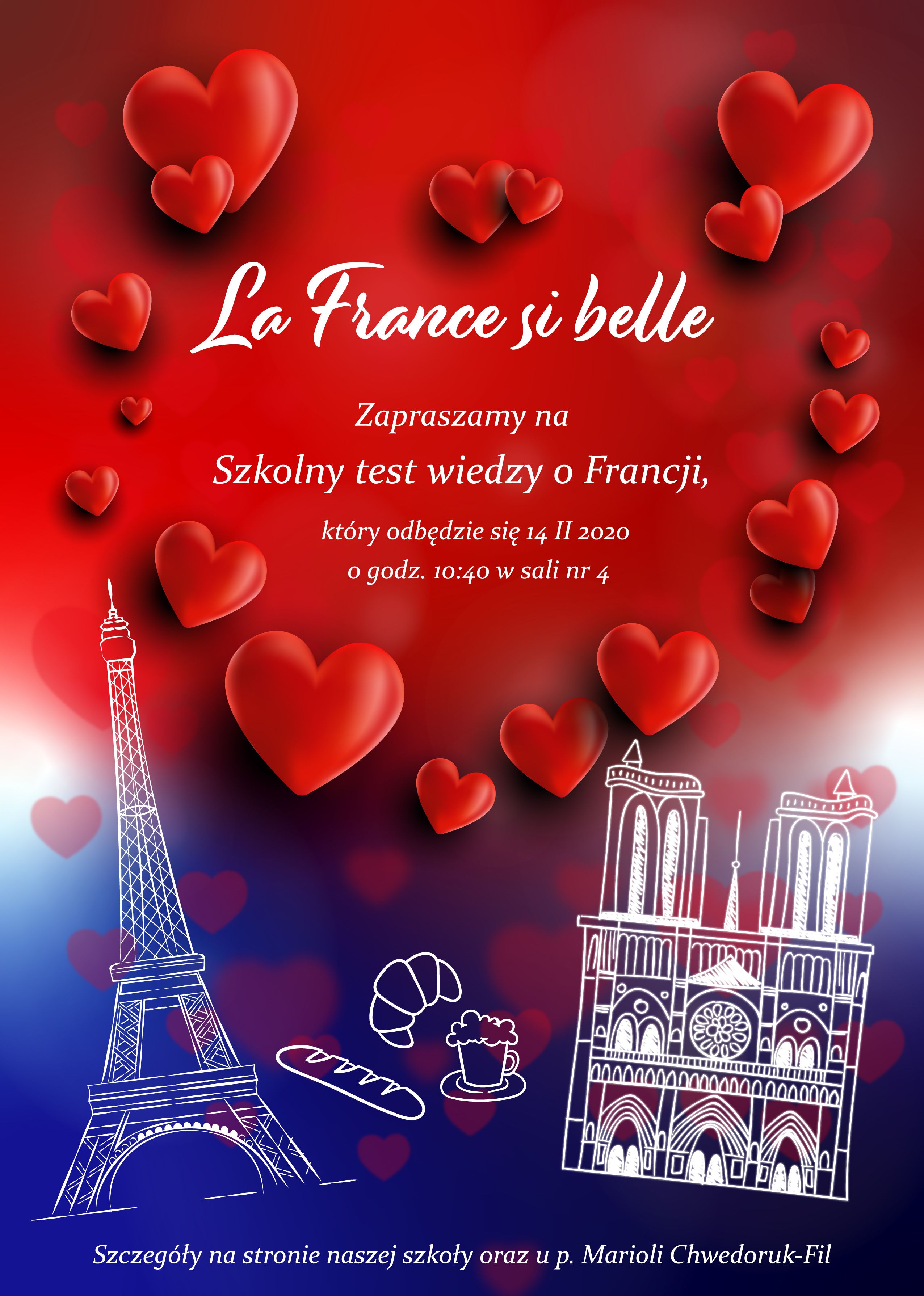 Dzień świętego Walentego w ILO kojarzy nam się ze szkolnym konkursem wiedzy o Francji „La France si belle”. W tym roku odbyła się druga jego edycja. Udział w nim wzięło 15 uczniów. Pytania przygotowane przez p. M. Chwedoruk-Fil obejmowały zagadnienia polityczne, historyczne, geograficzne, a także językowe.