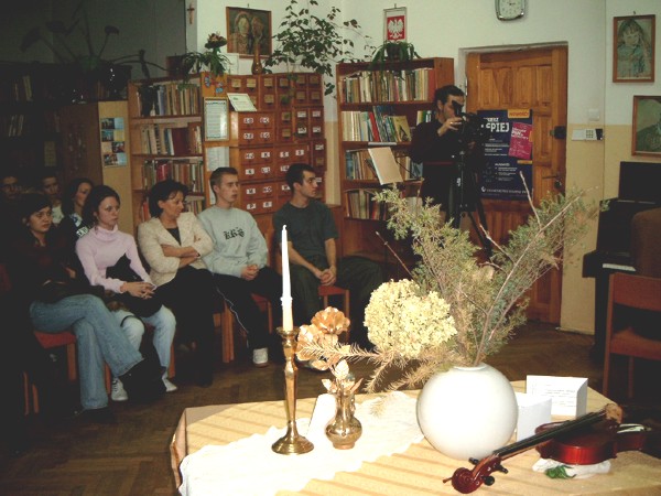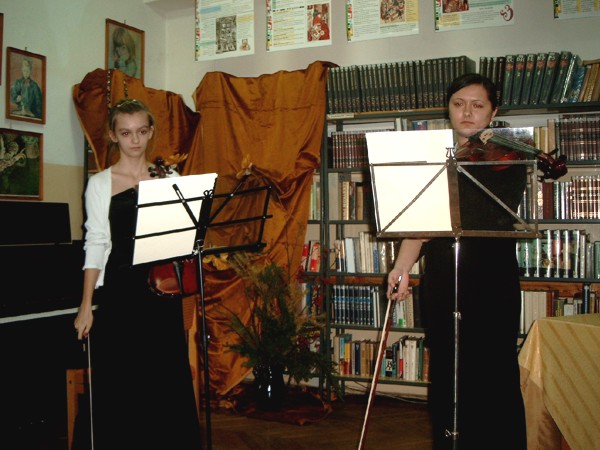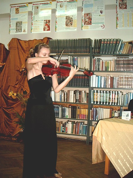 Wszyscy zgromadzeni: uczniowie i nauczyciele, mogli posłuchać pięknej muzyki w wykonaniu bardzo wrażliwych i utalentowanych młodych artystów: Magdę Białoch, Monikę Sołdaj i Arnolda Gniwka. Artyści nie tylko grali ale również opowiadali o utworach, kompozytorach i prądach muzycznych. ich fascynacja muzyką była bardzo wzruszająca i udzieliła się słuchającym. Wszyscy są uczniami Szkoły Muzycznej I i II stopnia im. Tadeusza Szeligowskiego w Lublinie. Madzia i Arnold są uczniami naszego liceum